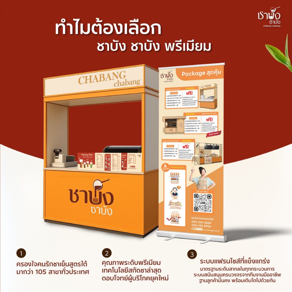 ชาบัง ชาบัง เหมาะกับผู้ที่อยากเริ่มต้นธุรกิจเครื่องดื่ม โดยไม่จำเป็นต้องมีประสบการณ์มาก่อน แบรนด์เตรียมอุปกรณ์ วัตถุดิบ และสูตรทุกอย่างไว้พร้อม เพียงมีพื้นที่ไม่มาก ก็สามารถเปิดร้านได้ทันที ด้วยต้นทุนต่อแก้วที่ไม่สูง และราคาขายที่เข้าถึงง่าย ทำให้สร้างผลตอบแทนได้ต่อเนื่องในระยะยาว