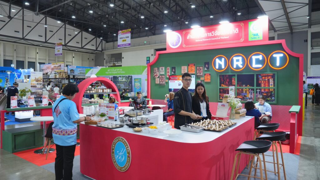 สำนักงานการวิจัยแห่งชาติ (วช.) หน่วยงานที่มีบทบาทสำคัญในการสนับสนุนงานวิจัย และนวัตกรรม เพื่อขับเคลื่อนประเทศให้มีความก้าวหน้า โดยภายในงาน Smart SME EXPO 2025 มหาวิทยาลัยสวนดุสิต หน่วยงานที่ได้รับทุนจาก วช. ได้นำอาหารที่เกิดจากงานวิจัย มาแสดงและจัดจำหน่าย ดังนี้