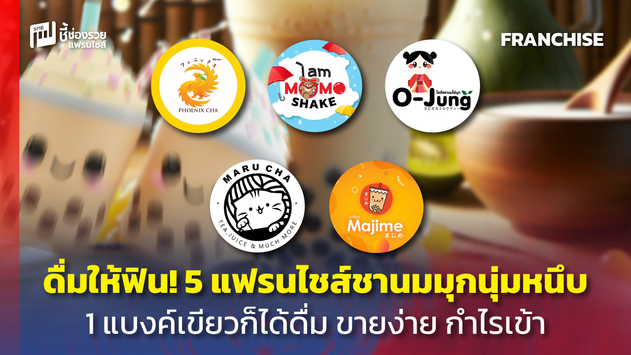 1 แบงก์เขียวก็ดื่มได้! รวม 5 แฟรนไชส์ชานมมุกนุ่มหนึบ งบลงทุนในหลักหมื่น ลงทุนน้อย กำไรดี แถมขายง่ายสุด ๆ ฟินทั้งแก้ว ฟินทั้งกำไร!