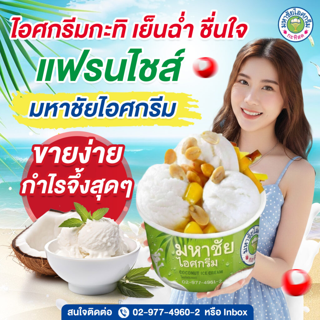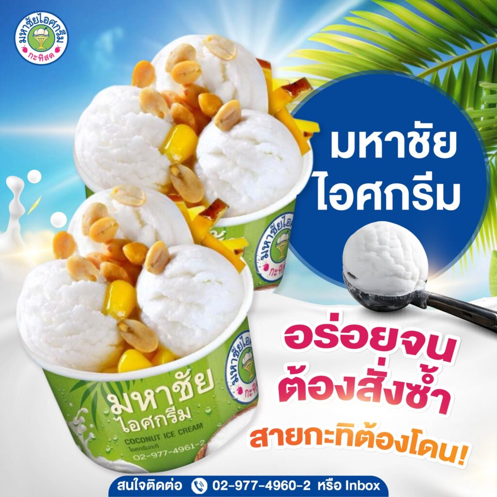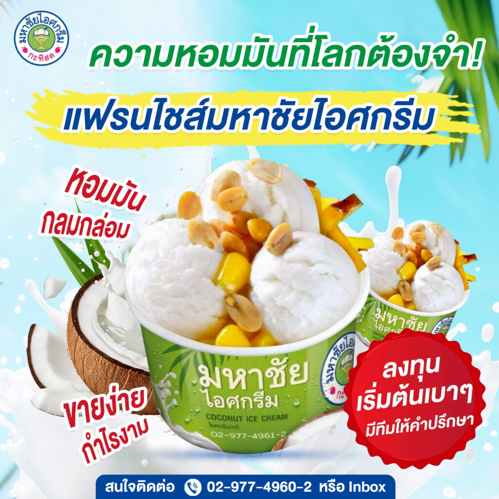 อีกหนึ่งแบรนด์แฟรนไชส์ไอศกรีมที่เราคุ้นหน้าคุ้นตากันอย่างดี นั่นคือ “มหาชัยไอศกรีม” ที่ดำเนินธุรกิจมาเป็นระยะเวลาเกือบ 30 ปี กับไอศกรีมกะทิสดที่ใช้มะพร้าวกะทิจากภาคใต้เท่านั้น ซึ่งระดับความหวานมันจะดีกว่ามะพร้าวจากภาคอื่น ๆ หรือตัวแทนจำหน่ายทั่วประเทศ