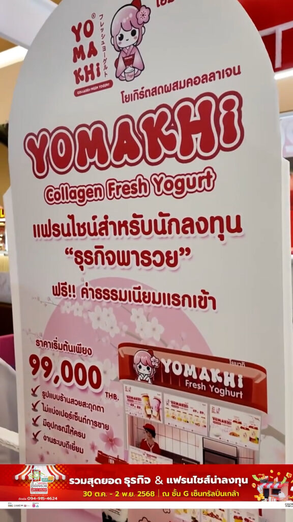 แฟรนไชส์สำหรับคนที่อยากเริ่มธุรกิจสุขภาพในยุคที่เทรนด์สุขภาพและ Beauty Inside Out กำลังเติบโตโยเกิร์ตสดผสมคอลลาเจนถือเป็นสินค้าในกลุ่ม “Health & Beauty Drink” ที่ตลาดต้องการสูงแฟรนไชส์ YOMAKHI จึงออกแบบโมเดลให้เหมากับผู้เริ่มต้นใช้พื้นที่เพียง 2×2 เมตรก็เปิดร้านได้จัดเซตอุปกรณ์ครบ พร้อมอบรมทีมก่อนเปิดจริงมีทีมการตลาดช่วยดูแลในโซเชียล