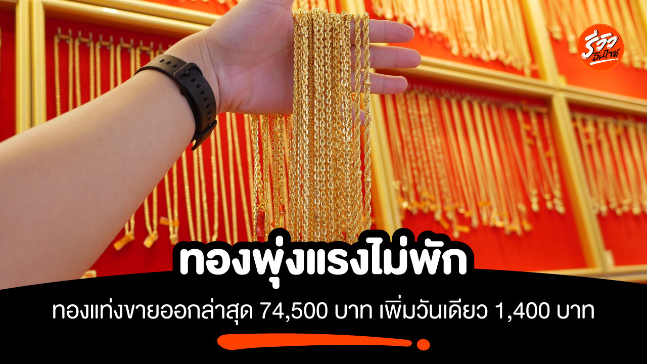 ทองพุ่งแรงไม่พัก ทองแท่งขายออกล่าสุด 74,500 บาท เพิ่มวันเดียว 1,400 บาท